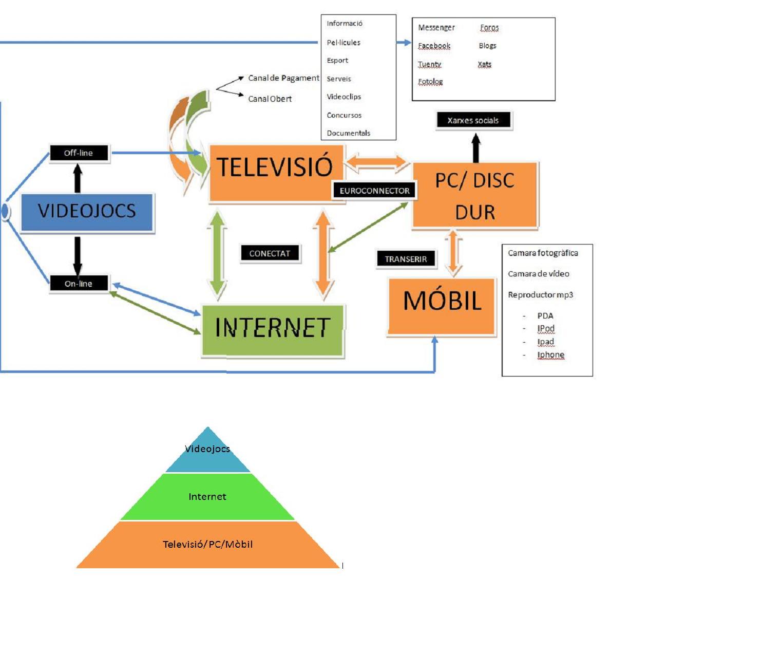 El esquema al que podemos acceder dentro de los Media (en su conectividad) nos informa de las relaciones que tienen unos aparatos tecnológicos con otros, es decir que mediante conectores o conexión a Internet podemos complementarlos.
